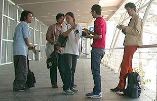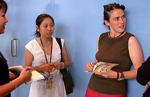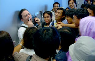 babar overwhelmed by the speakers and takes a trip to the cafe |